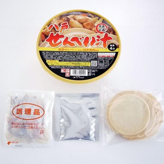 青森県南部の八戸市を中心とした郷土料理「八戸せんべい汁」を、お湯を注ぐだけで手軽に味わえるカップスープです。鶏だしベースの醤油味のスープに、モチモチとした独特の食感の南部せんべいがお楽しみいただけます。